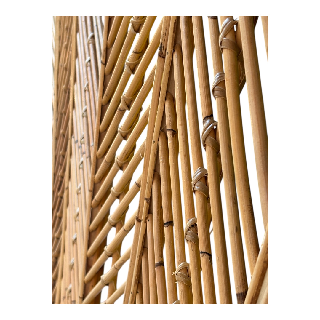 Tamamen el işçiliğiyle üretilen bu 160 cm genişliğindeki çift kişilik rattan yatak başlığı,
