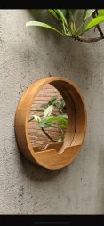 Her yuvarlak cepli masif ahsap ayna, üretiminde kullanılan ağacın kendine özgü dokusunu taşır. Bu sayede hiçbir ürün bir diğerine benzemez; her biri doğanın izini üzerinde taşır. El işçiliğiyle şekillenen çerçevesi, mekanınıza sıcaklık ve doğallık kazandırırken, aynanın sade formu ferahlık hissi yaratır.